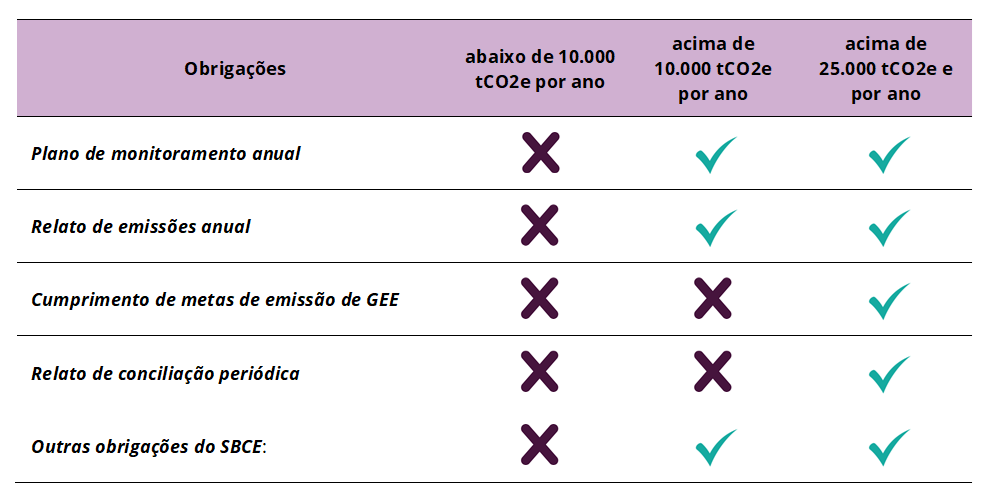 Os sujeitos das obrigações são os Operadores, ou seja, fontes e instalações localizadas no território nacional que emitam ou possam emitir gases de efeito estufa (GEE), sob responsabilidade de operadores, pessoas físicas ou jurídicas.