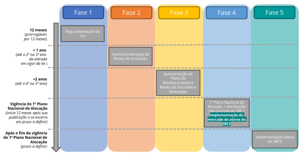 Com a publicação da lei, tem início o processo faseado de regulamentação e implementação do SBCE: